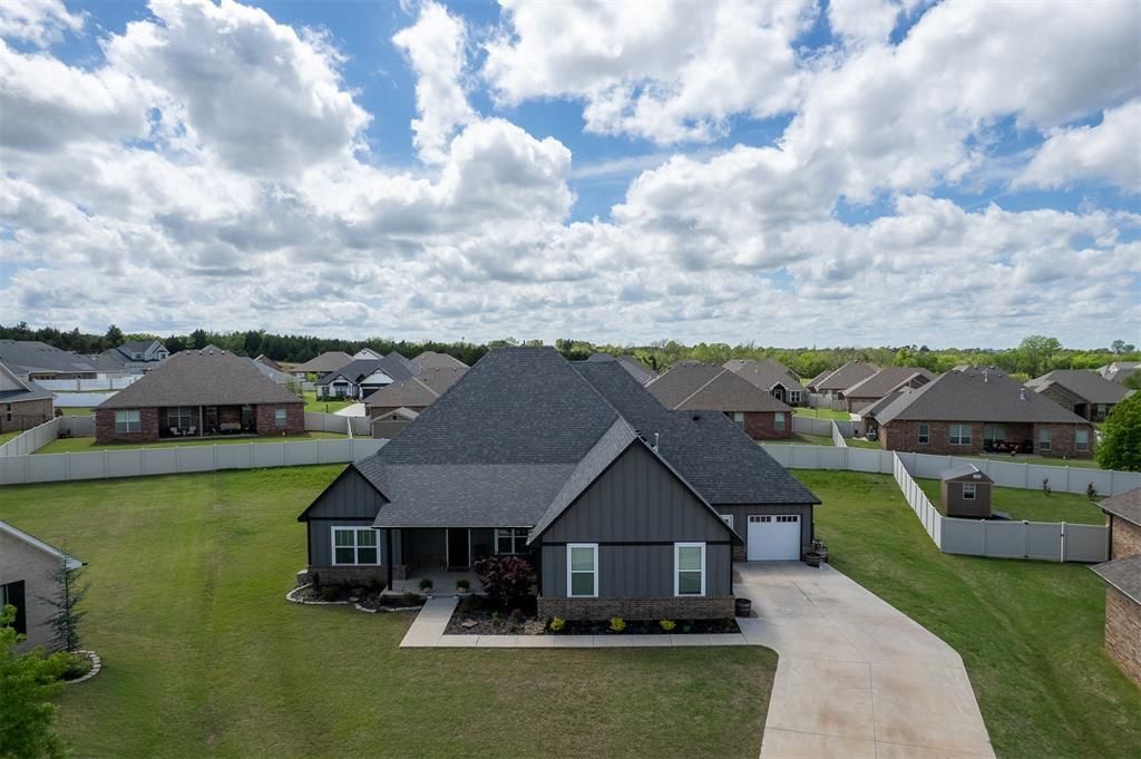 Beautiful home tucked away on a quiet cul-de-sac in Grove school district! This spacious layout offers 3 bedrooms, a dedicated office, 2 full baths, and 2 half baths-perfect for both everyday living and entertaining. The open-concept design creates a seamless flow between the living, dining, and kitchen areas, all filled with natural light from large windows throughout.Enjoy the added flexibility of a bonus room and separate study, ideal for work, hobbies, or guests. Step outside to a covered back patio featuring a cozy fireplace-perfect for relaxing evenings year-round.This home combines comfort, functionality, and style in a desirable setting!